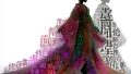 プロンプト:ワードクラウド、二重露光、黒髪ロングでポニーテールの女の子が横向きに歩いている、都会の路地